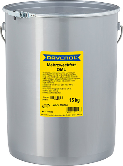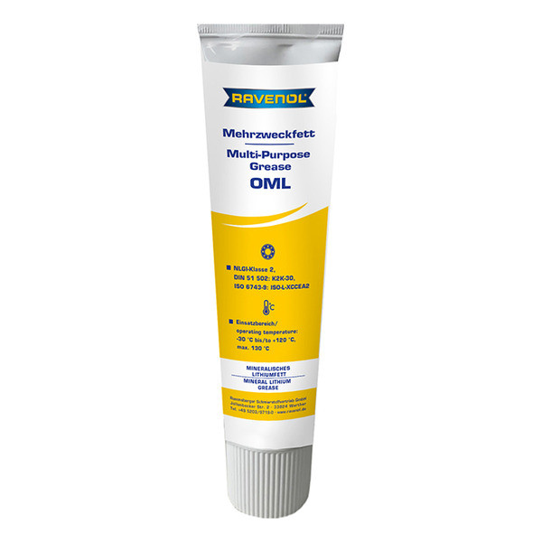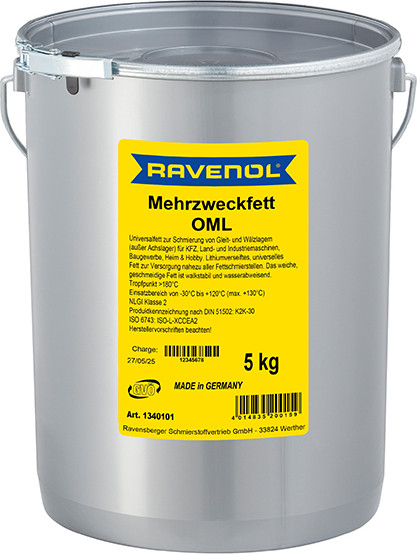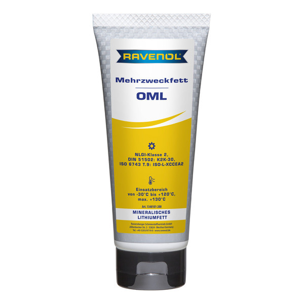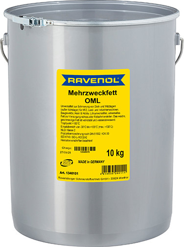 RAVENOL Mehrzweckfett OML – минералдык негиздеги, литий самыны загуститель катары колдонулган, универсалдуу жана сууга туруктуу пластикалык май. Кычкылданууга жана коррозияга каршы коргоону камсыз кылат.