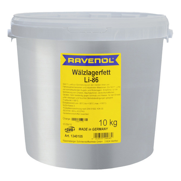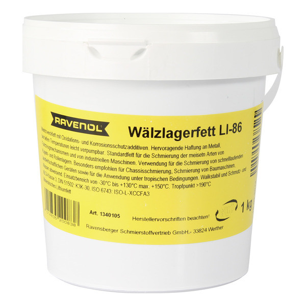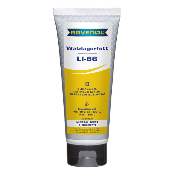 RAVENOL Wälzlagerfett LI 86– минералдык негиздеги, сууга туруктуу универсалдуу пластикалык май, литий самыны загуститель катары колдонулган. Кычкылданууга жана коррозияга каршы ишенимдүү коргоону камсыздайт.