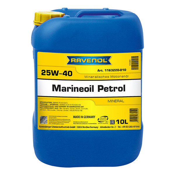 RAVENOL MARINEOIL PETROL SAE 25W-40 – синтетикалык компоненттер кошулган минералдык мотор майы, кайыктын кыймылдаткычтары үчүн арналган. Стационардык жана асма бензин кыймылдаткычтары үчүн ылайыктуу.