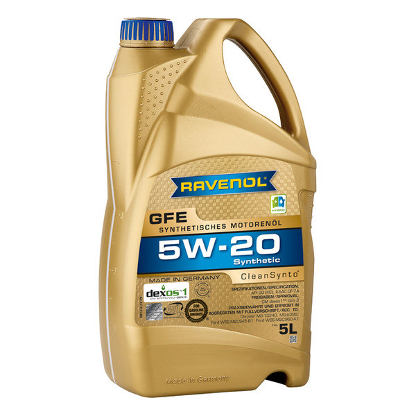 RAVENOL GFE SAE 5W-20 – CleanSynto® технологиясы менен өндүрүлгөн синтетикалык, агымдуулугу жогору мотор майы, турбонаддуву бар же жок жана түз инжекциялуу бензин жана дизель кыймылдаткычтары үчүн.