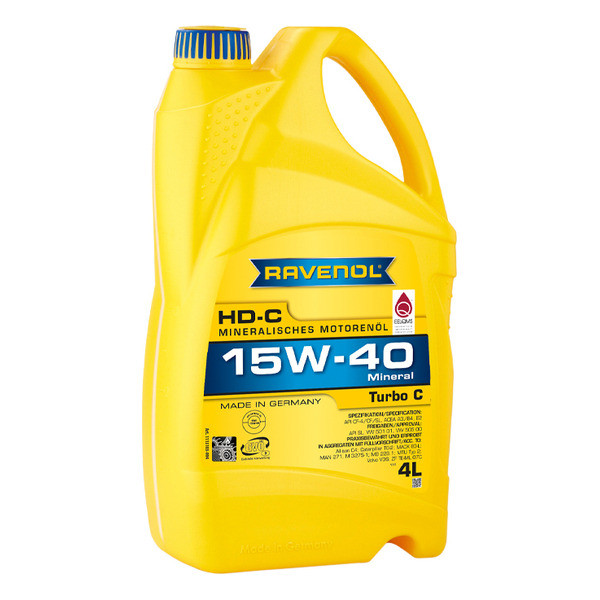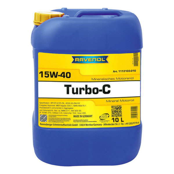 RAVENOL Turbo-C HD-C 15W-40 – минералдык мотор майы, жеңил бензин жана дизель кыймылдаткычтары үчүн, турбонаддуву жана түздөн-түз бүркүүчү системасы бар жана ансыз. Сүрүлүүнү жана эскирүүнү минималдаштырат.