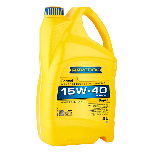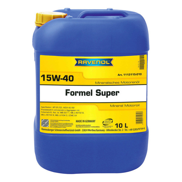 RAVENOL Formel Super SAE 15W-40 – минералдык мотор майы, жеңил бензин жана дизель кыймылдаткычтары үчүн, турбонаддуву менен жана ансыз, ошондой эле коммерциялык автотранспорт үчүн өндүрүлгөн.