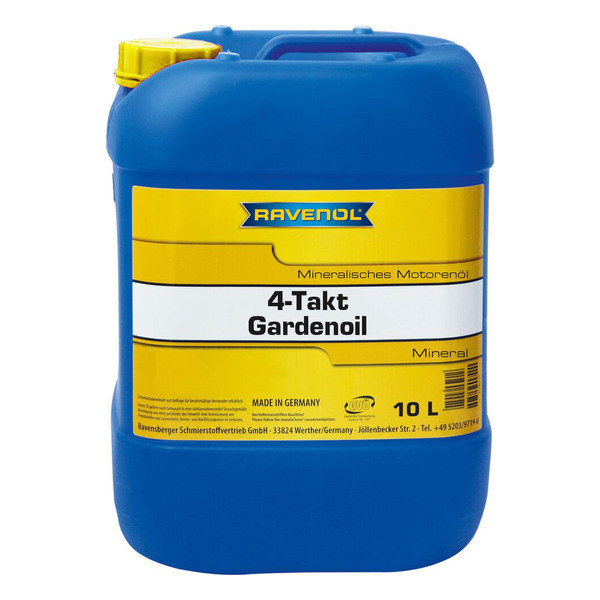 RAVENOL Gardenoil 4-Takt – Германияда өндүрүлгөн минералдык мотор майы, 4-такттуу газон кескич кыймылдаткычтары үчүн. Арнайы тандалган кошулмалар комплекси эскирүүдөн жана коррозиядан жогорку коргоону камсыздайт. Кадимки иштөө температурасында колдонууга сунушталат. Туруктуу илешкектүүлүк жана кыйшайуудан жоготуулардын жоктугу.